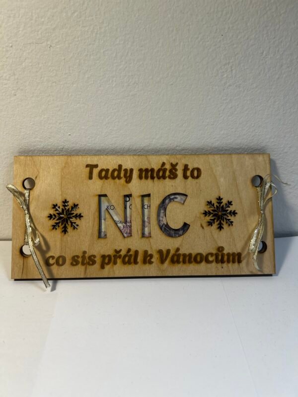 Vtipný dřevěný produkt, do kterého můžete schovat peníze, voucher nebo jinou drobnost. Mezi dvě desky vložíte překvapení a proměníte obyčejný dárek v nezapomenutelný moment. Hodí se na narozeniny, svátky, výročí nebo prostě kdykoliv, kdy chcete někoho pobavit.